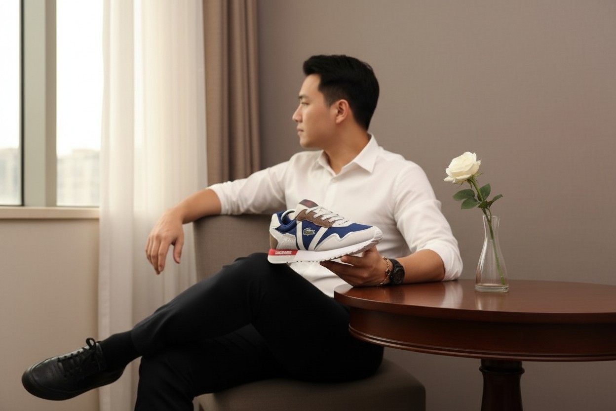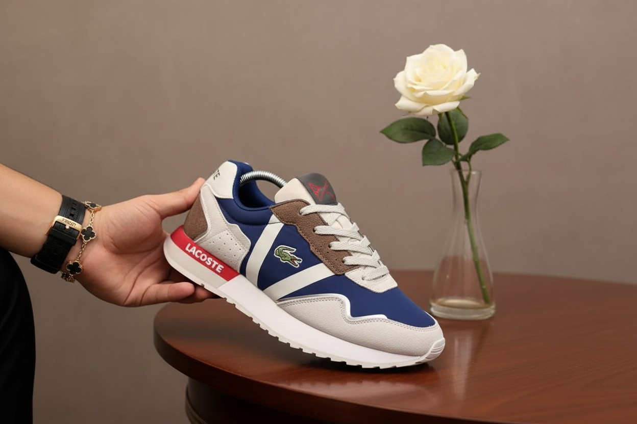 Présentée dans une mise en scène élégante, cette chaussure homme au design Lacoste style incarne parfaitement le mariage entre raffinement, modernité et distinction.