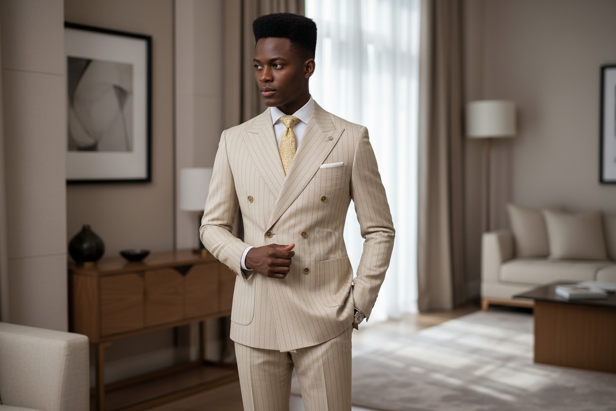 Incarnant l’élégance classique revisitée, ce costume homme beige rayé premium Daniel Collin est conçu pour les hommes qui recherchent un style distingué et affirmé.