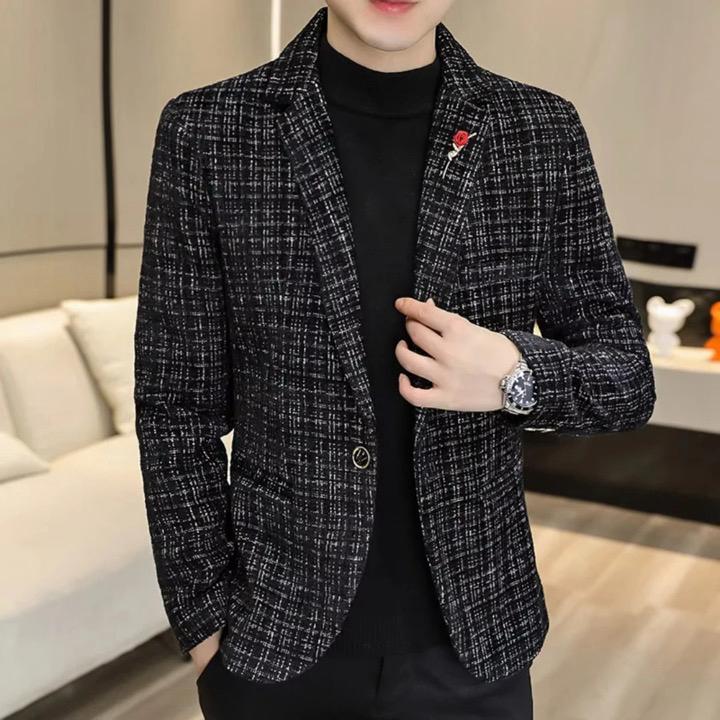 Blazer Homme Premium Noir Texturé – Style Chic Moderne