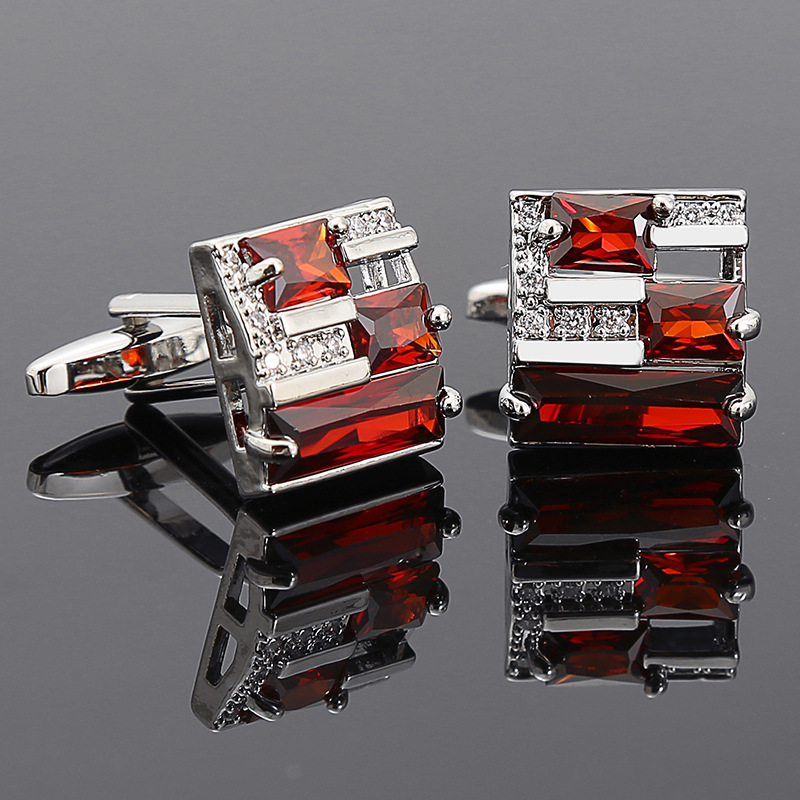 Ces boutons de manchette haut de gamme se distinguent par leur design sophistiqué mêlant cristaux rouges taillés et finition or raffinée. Leur structure géométrique moderne apporte une touche de caractère tout en conservant une élégance intemporelle.