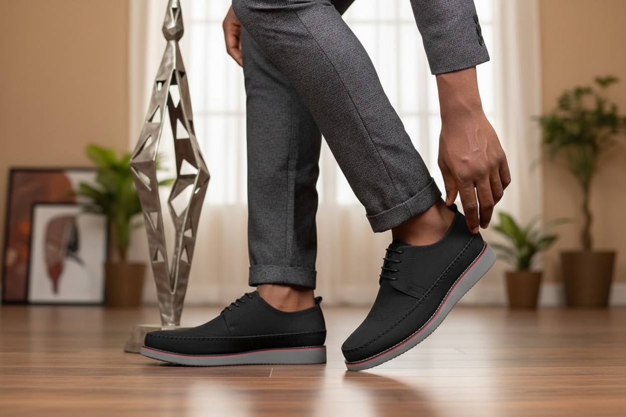 Pensée pour les hommes qui visent le niveau supérieur, cette chaussure noire premium est l’expression parfaite de la sobriété élégante.