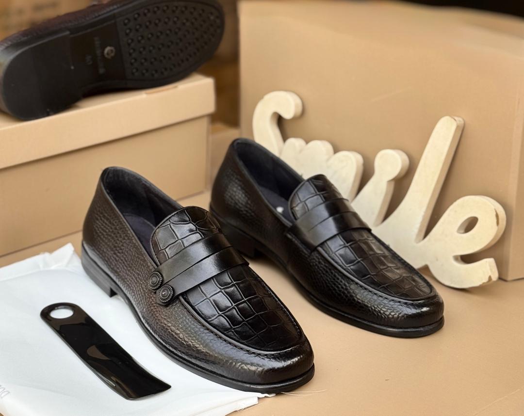 Le design texturé apporte un style unique et luxueux, tandis que la finition soignée et la bande décorative sur le dessus renforcent le caractère distingué de la chaussure. Ce modèle est spécialement conçu pour les hommes qui souhaitent afficher une allure élégante et raffinée.