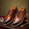 Chaussure homme à lacets avec finition marron patiné et détails perforés raffinés.