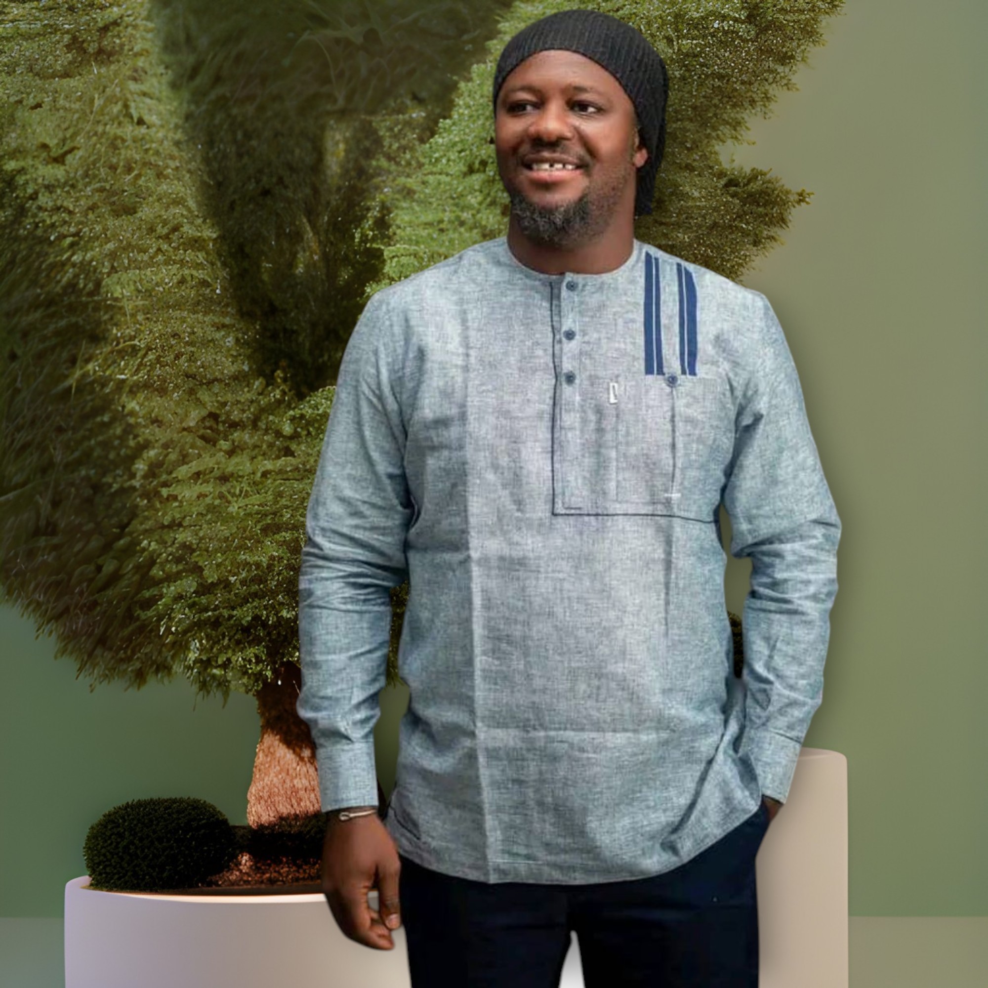 Cette chemise au design africain moderne est pensée pour les hommes qui retiennent l’élégance, la sobriété et la qualité.