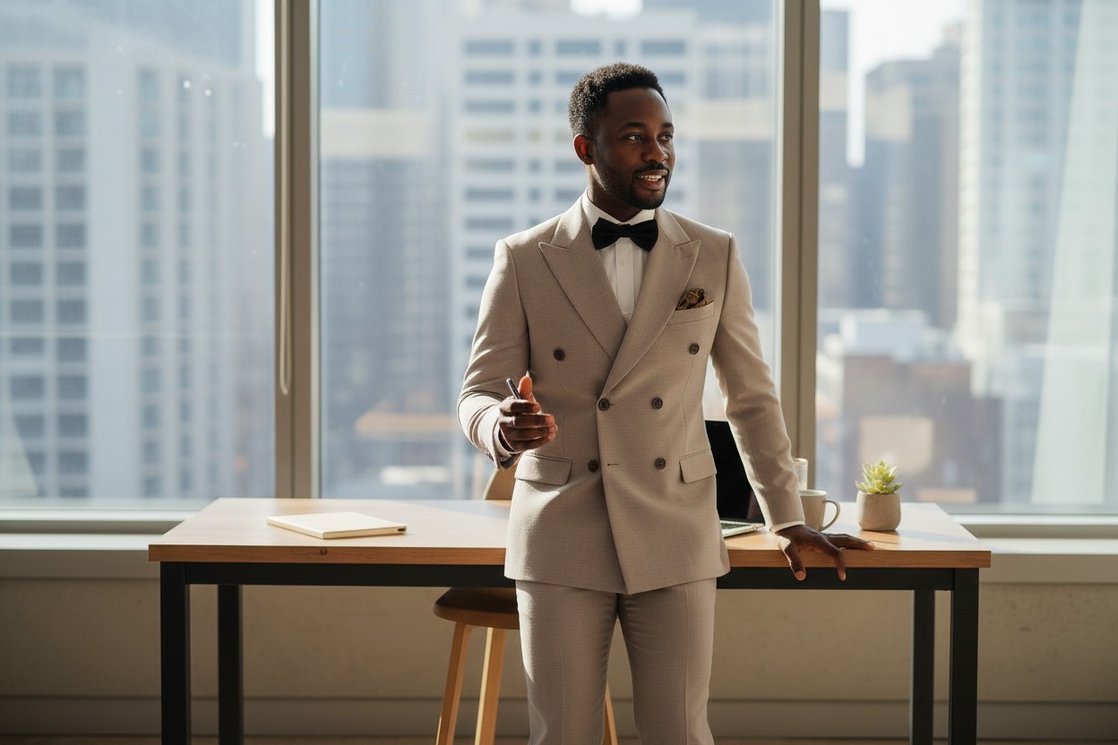 Costume Homme Beige Élégant – Coupe Croisée Premium