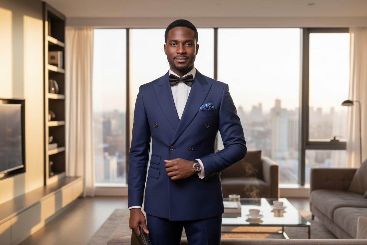 Affirmez votre style avec ce costume homme bleu à la coupe croisée moderne. Son design élégant et sa finition soignée en font une tenue idéale pour les hommes qui recherchent à la fois classe et présence.