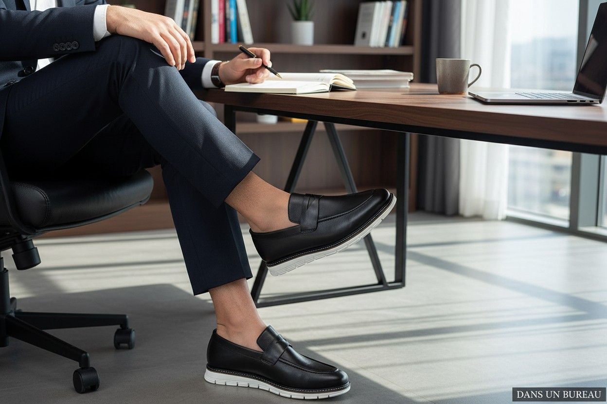 Grâce à sa conception pratique sans lacets, cette chaussure est idéale pour les hommes qui recherchent une solution élégante tout en privilégiant la simplicité et le confort.