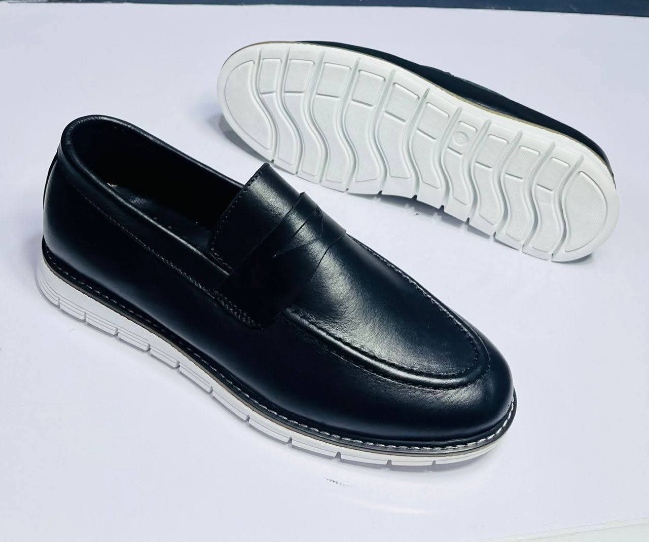 Affirmez votre élégance avec ce mocassin homme noir à semelle blanche, un modèle moderne qui allie simplicité, confort et style.