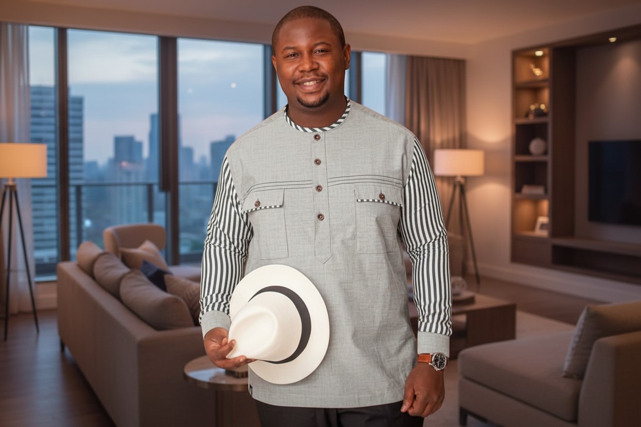 Affirmez votre élégance avec cette tenue homme au style africain moderne , conçue pour les hommes qui comprennent que l’apparence est une signature .