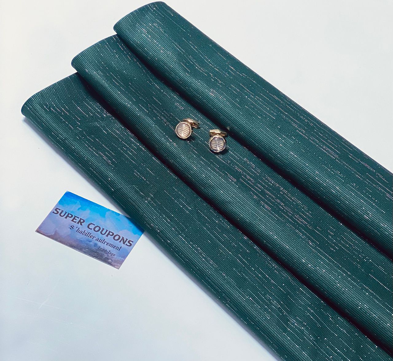 Ce coupon de tissu vert brillant est conçu pour la confection de costumes et de tenues élégantes. Son aspect légèrement scintillant apporte une touche de luxe et de distinction, parfait pour ceux qui veulent un style remarquable.
