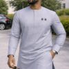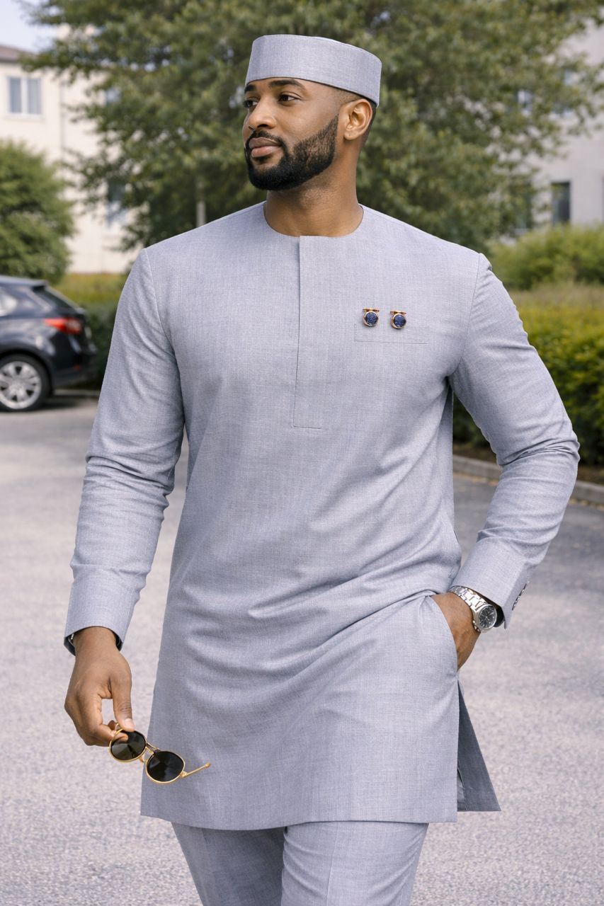Découvrez ce tissu gris haut de gamme, idéal pour la confection de tenues masculines modernes, élégantes et distinguées.