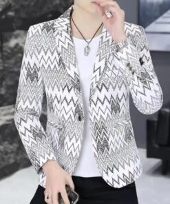 Blazer Homme Premium Blanc Motif Graphique – Style Chic Moderne